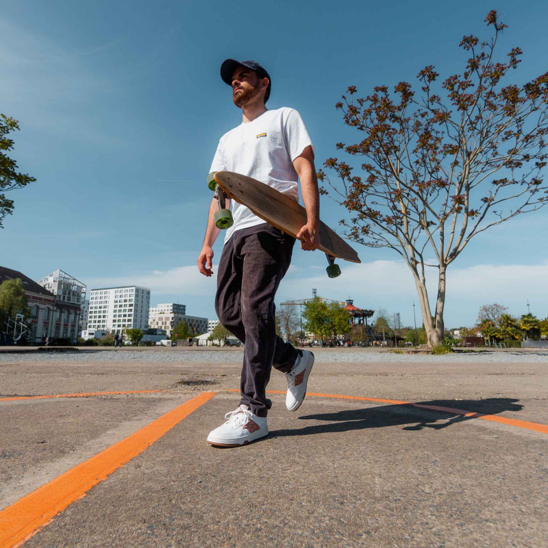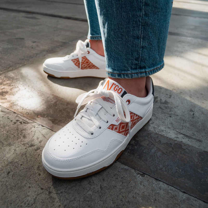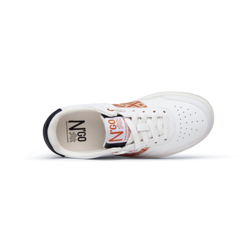Tribute to the 80's with the first N'GO pair co-created with its community! We find a very low heel at the back and a more stretched front for a more sportswear look. The sole has been raised to take height. A label for transparency has also been added on the tongue, to the delight of sneaker fans.