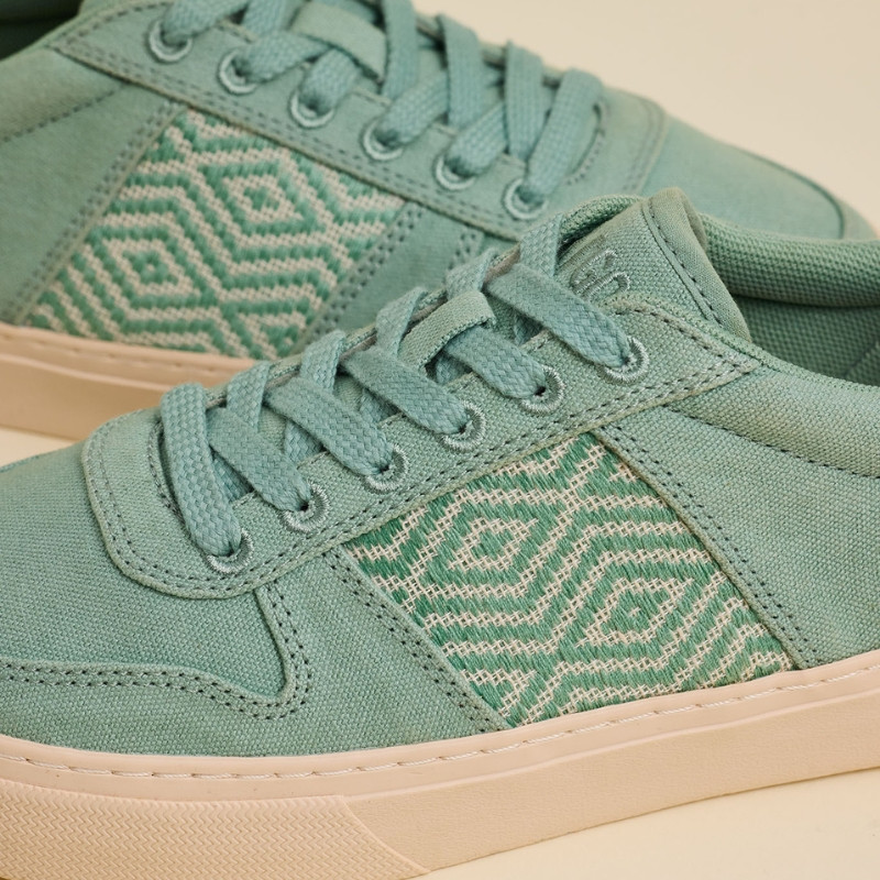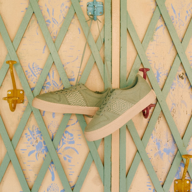 This woven band is the N'go signature. When you wear these sneakers, you're supporting the skills of independent Vietnamese craftswomen. The motifs in the Mai Chau collection were hand-woven by Thoa, an autonomous and independent Vietnamese craftswoman from the White Thai ethnic minority in Mai Chau, hence the choice of collection name.