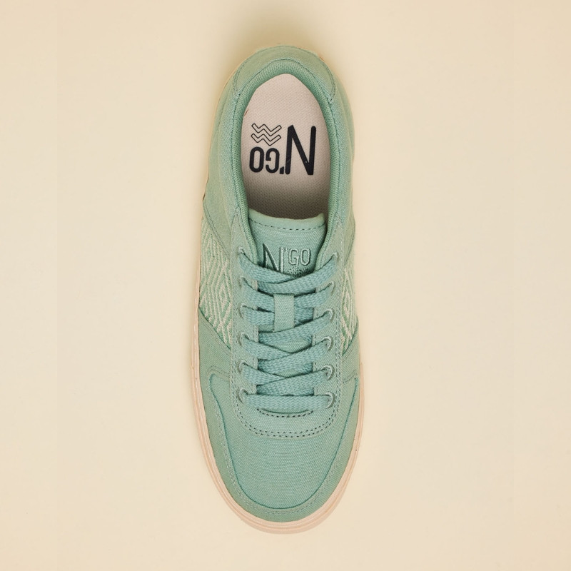 To ensure this pair lasts more than one summer, the N'go teams selected thick GOTS-certified organic cotton for the upper, inner lining, laces and embroidered eyelets. By choosing to limit the use of materials, N'go has also ensured that the transportation involved in sourcing the materials is kept to a minimum (less CO2 emissions), and that the pair is recycled at the end of its life (again, less CO2 emissions).