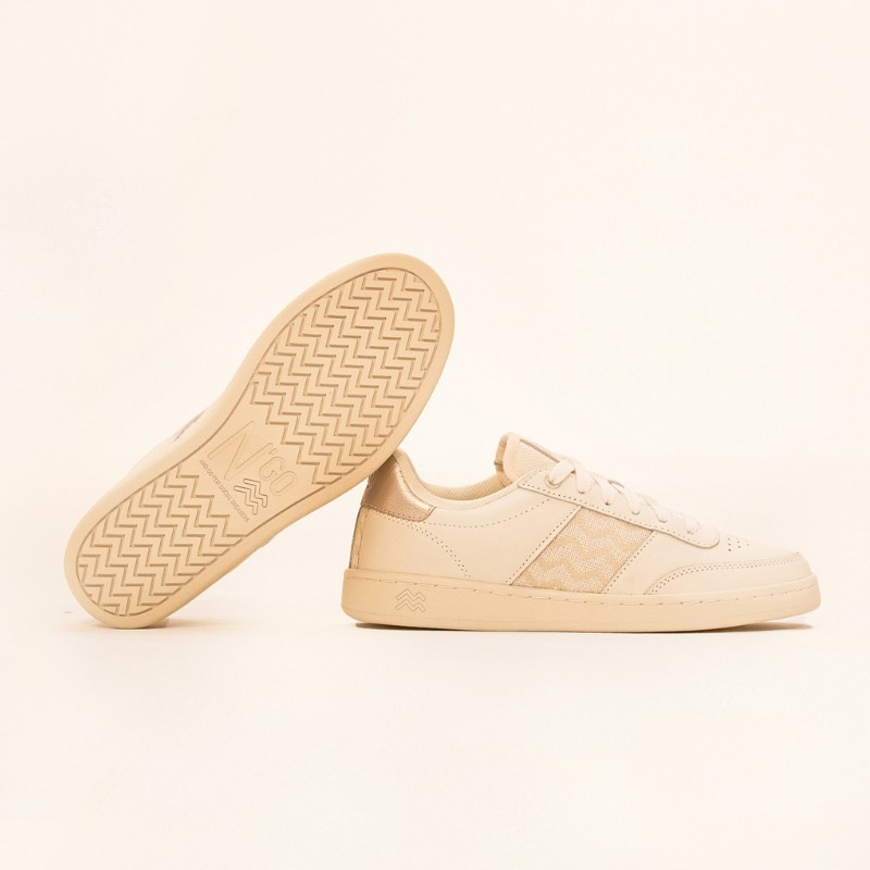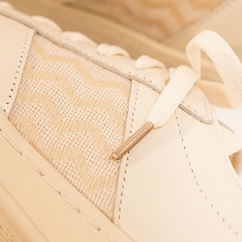 Every component of the sneaker has been meticulously selected by our teams to stand the test of time, while minimizing its carbon footprint. That's why we've selected soft beige full-grain leather, sourced locally in Vietnam, as well as recycled and certified materials.