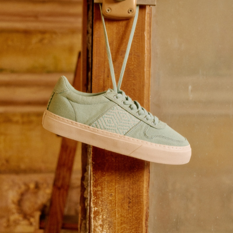 To ensure this pair lasts more than one summer, the N'go teams selected thick GOTS-certified organic cotton for the upper, inner lining, laces and embroidered eyelets. By choosing to limit the use of materials, N'go has also ensured that the transportation involved in sourcing the materials is kept to a minimum (less CO2 emissions), and that the pair is recycled at the end of its life (again, less CO2 emissions).