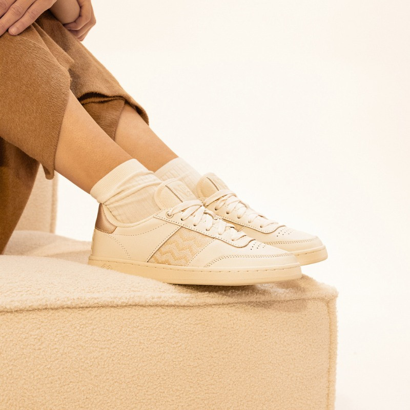 Every component of the sneaker has been meticulously selected by our teams to stand the test of time, while minimizing its carbon footprint. That's why we've selected soft beige full-grain leather, sourced locally in Vietnam, as well as recycled and certified materials.