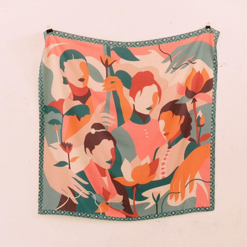 For Pink October, N’GO is partnering with Alexandra de Assunçao to create a colorful, illustrated, and feminine scarf. This accessory is a tribute to the craftswomen we collaborate with. Without them and their precious hands, N’GO would not exist. It is also a solidarity product. We are donating 10% of the revenue generated to the RoseUp association from October 1st to 31st, 2025. RoseUp is a French association that informs, supports, and defends the rights of women affected by all types of cancer.